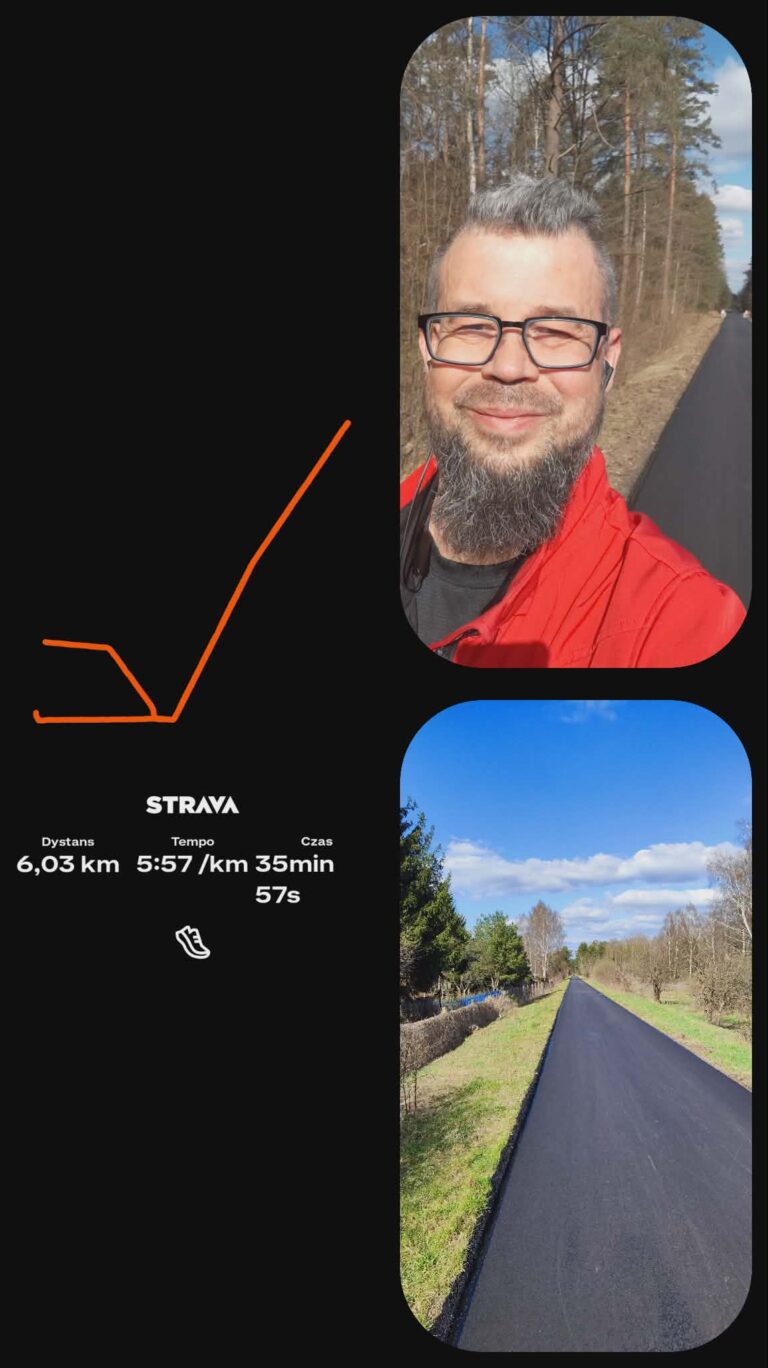 Data: 14 marca 2026Dystans: 5,01 kmCzas: 27:03Średnie tempo: 5:24/kmMiejsce Open: 145 / 349Kategoria M40: 40 / 67 📝 Opis Dzisiejszy start na lotnisku Olsztyn–Mazury był pierwszym sprawdzianem formy w tym sezonie. Trasa prosta, szybka, ale jednocześnie bardzo wymagająca przez silny…